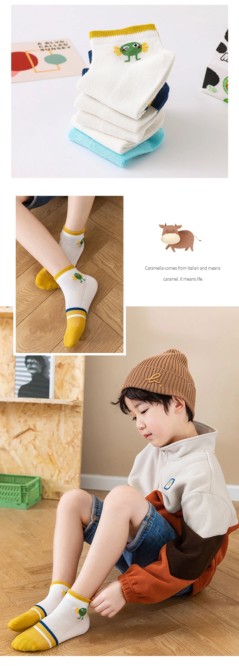 5 пар/лот, Детские хлопковые носки милые летние дышащие сетчатые Носки с рисунком для маленьких мальчиков и девочек, От 1 до 12 лет модные детские носки для подростков