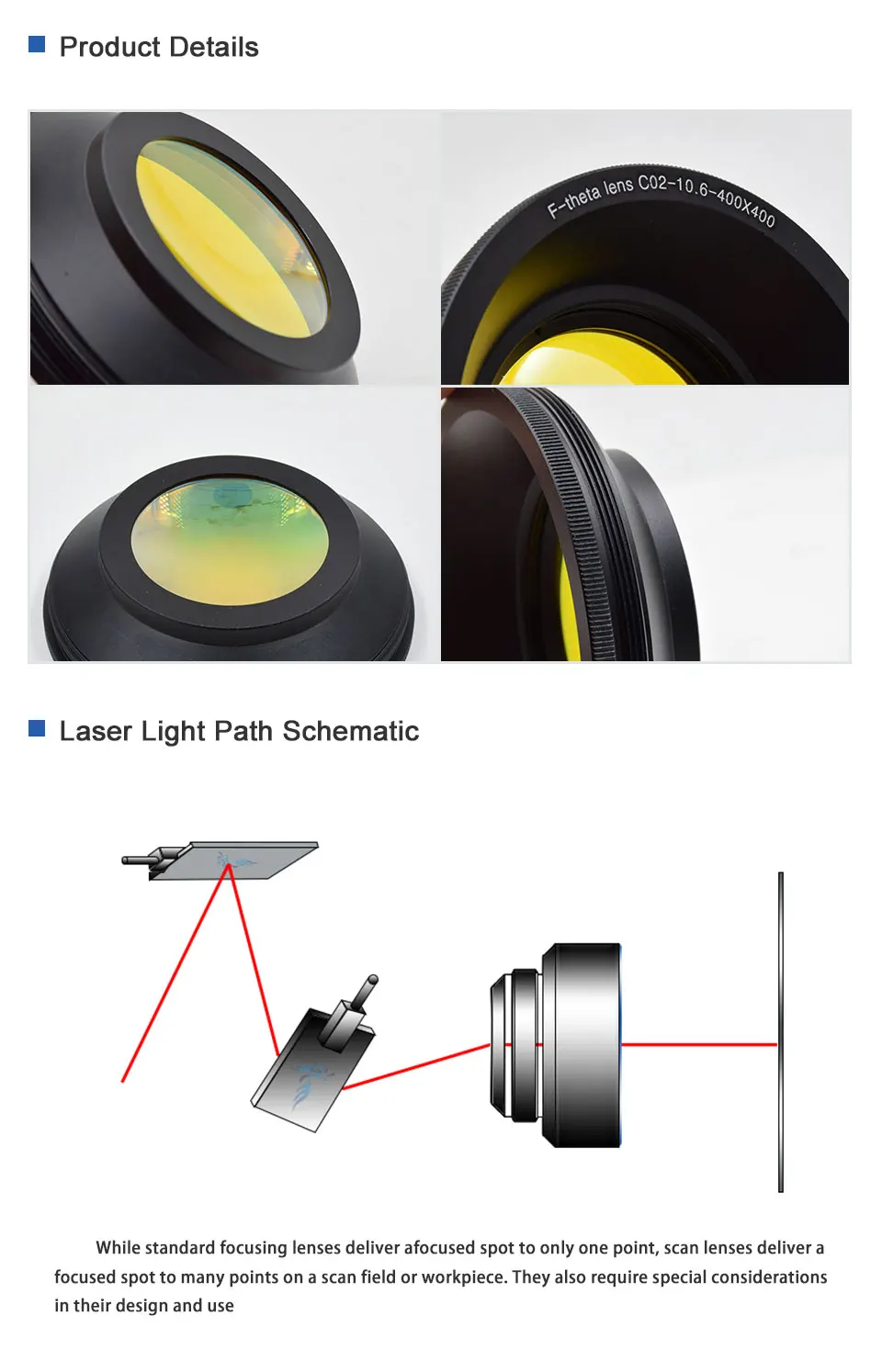 В типичной конфигурации объектива сканирования, F-0 объектив с одной или двумя осями зеркал galvo, которые обеспечивают позиционирование и точность фокусировки лазерного луча.