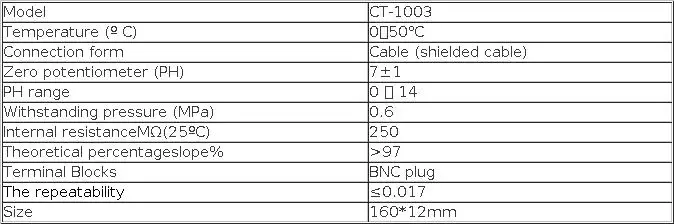 CT-1003PH composite PH электрод стеклянный электрод для измерения pH и серебристо-серебряного хлорида электрода сравнения композитного материала кислоты и высокотемпературные стеклянные репрессии непрерывная 24-часовая работа. Это измеритель pH, измеряющий ключевой элемент, для измерения значения pH водного раствора ионов водорода в глубине, широко используется в химической промышленности, фармацевтическая промышленность и исследовательские утилиты PH обнаружения.