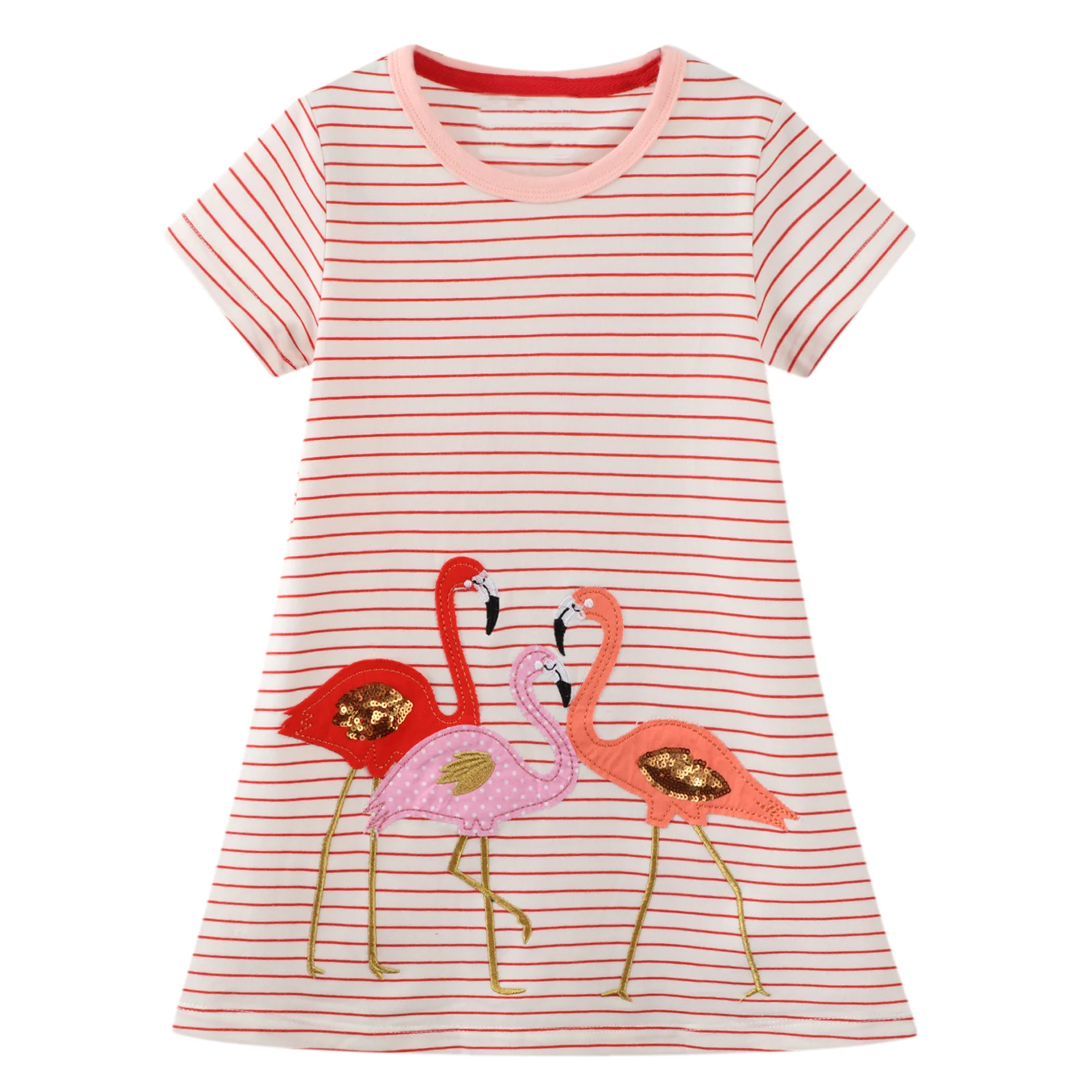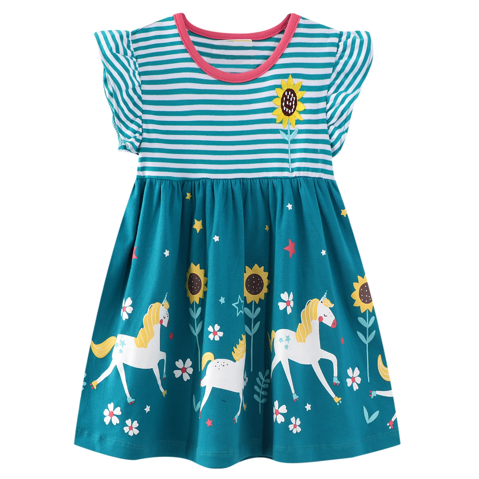Платье для маленьких девочек с аппликацией в виде животных; Vestidos; Хлопковые детские праздничные платья в полоску с единорогом; Одежда для девочек; Костюм принцессы; От 2 до 7 лет