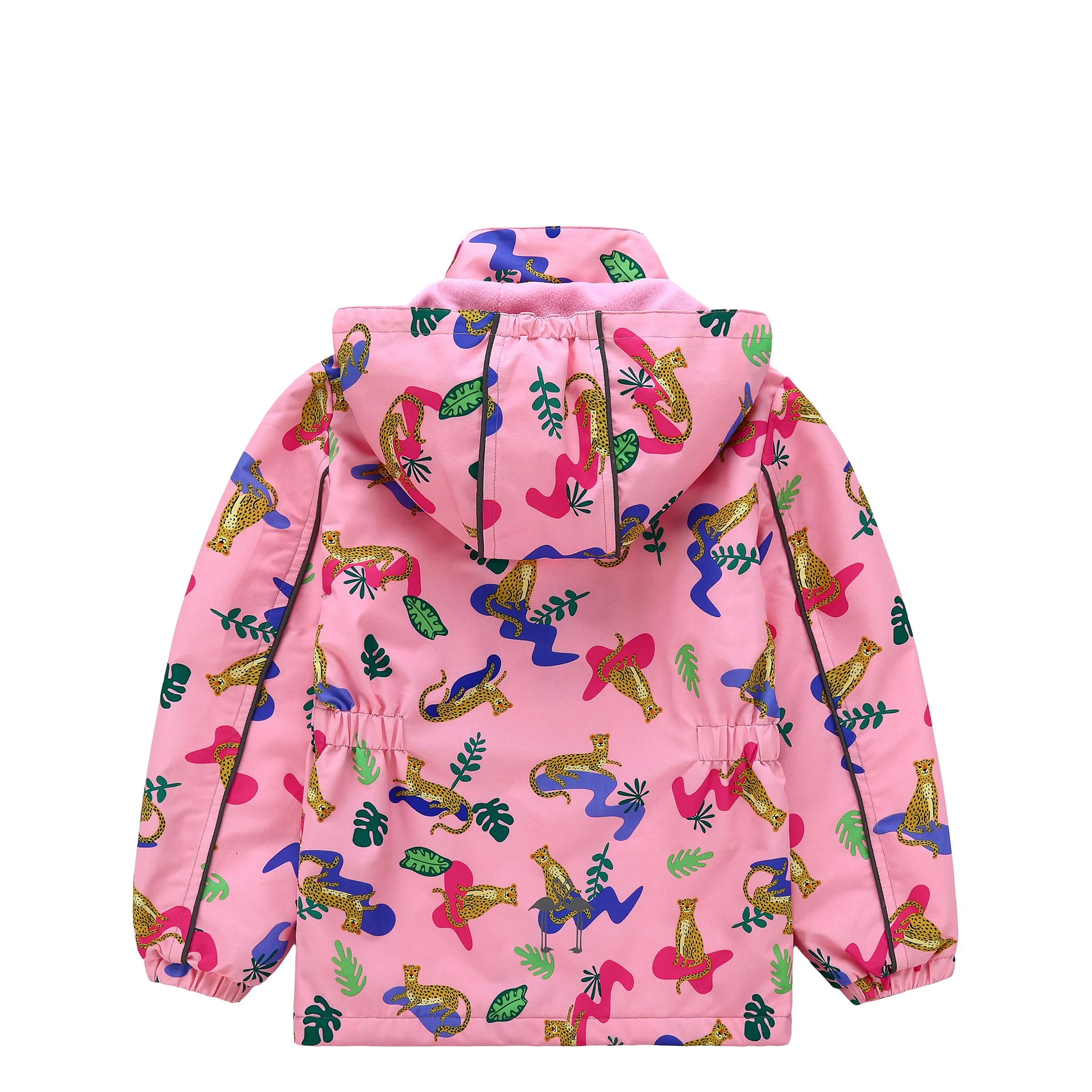 2018 куртка для девочек; Флисовая ветровка с капюшоном и принтом; Пальто для маленьких девочек; Детская верхняя одежда с длинными рукавами; Сезон осень-зима