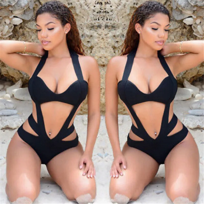 2018 сексуальный цельный купальник женский купальник черный с вырезами купальный костюм бандажный боди комбинезон Монокини купальник бикини трикини
