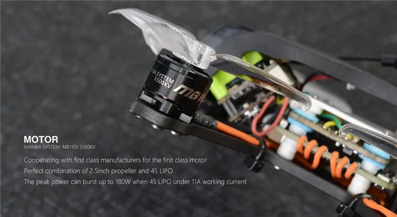 Контроллер полета: Мамба F405 мини; MPU6000; AT7456 OSD; вспышка 16м; 5В 1A BEC.