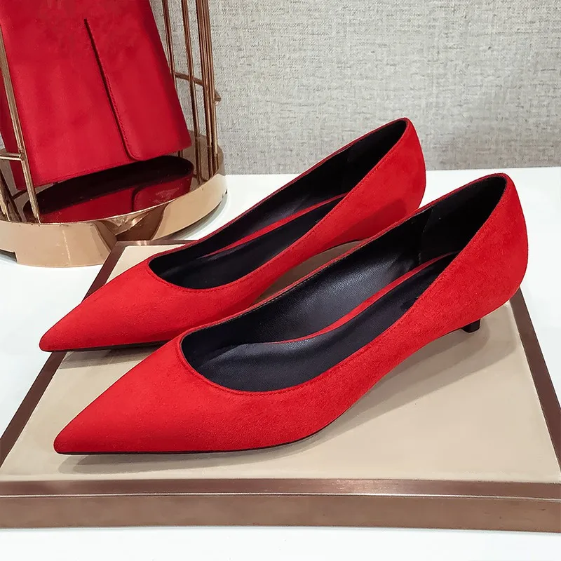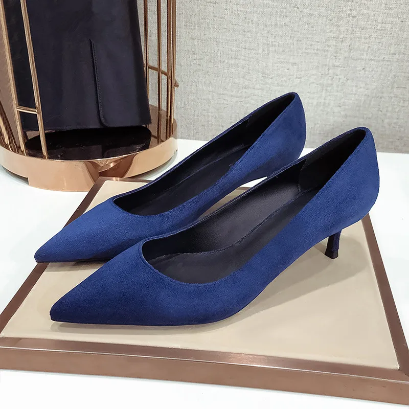 Женские туфли-лодочки из натуральной замши красного и синего цвета пикантные женские офисные туфли на тонком высоком каблуке 3 см, 5 см, 6 см, большие размеры