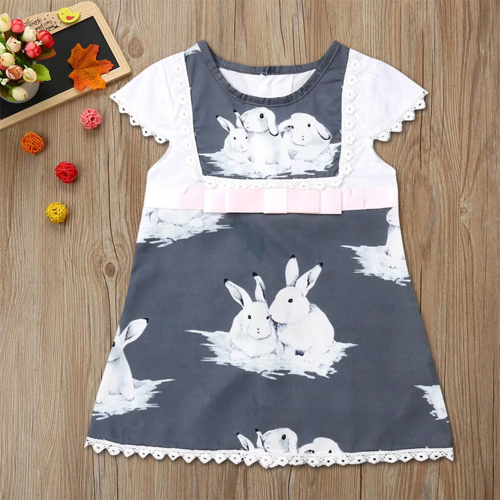Кружевное платье с короткими рукавами для маленьких девочек на Пасху, платье с принтом кролика