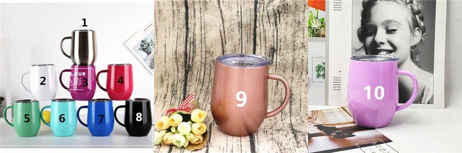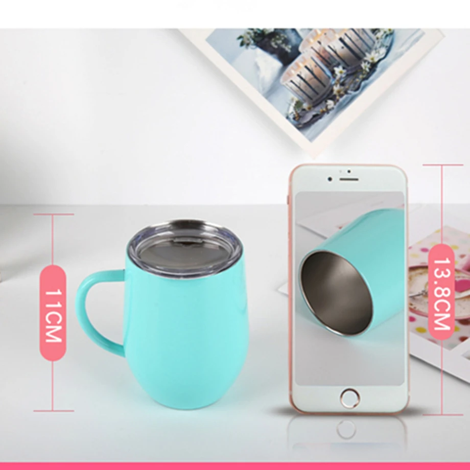 1) 12 унций чашки вина с ручкой, высокое качество, 1 шт в бумажной коробке, 50 штук в коробке