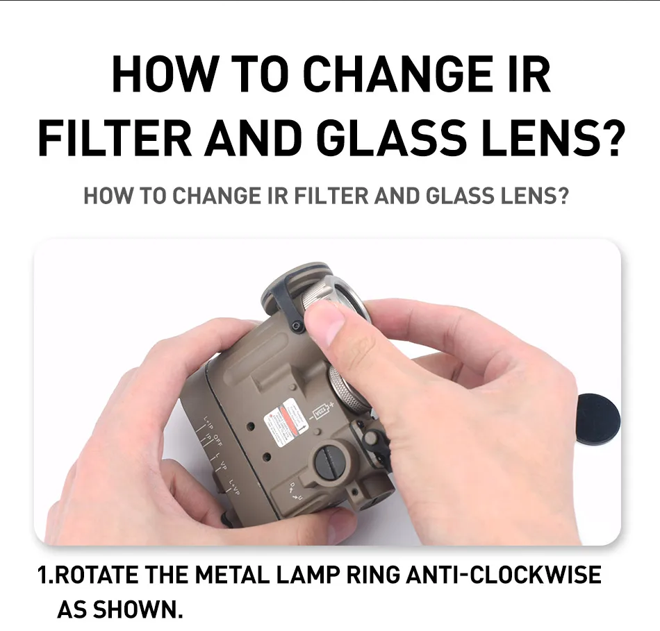 1. Поверните со стразами и металлическими лампы кольцо против часовой стрелки, как показано на рисунке. 2. Вы будете получать объектив после того, как вы принимаете наряду с лампа кольцо (как бы то ни было FITER или стекло объектив б/у). 3. Пожалуйста, выберите другой объектив для того, чтобы заменить его, и верните его в качестве шаг 1DID (но вращение по часовой стрелке)