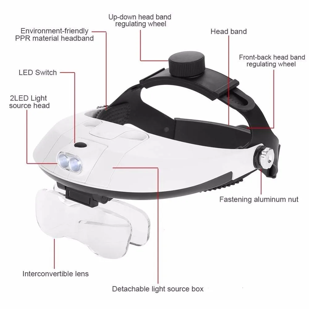 Головная повязка на голову с головкой, Лупа со светодиодной лампой, ювелирный ремонт часов, шлем, лупа, увеличительное стекло, лупа с 5 линзами