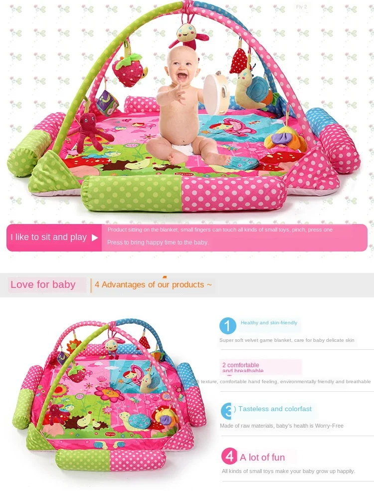 Основные характеристики: мягкие и удобные ткани, яркие цвета, Висячие детали на кронштейне имеют звенящие колокольчики, это необходимо для тренировки тактильного слуха и зрения ребенка.