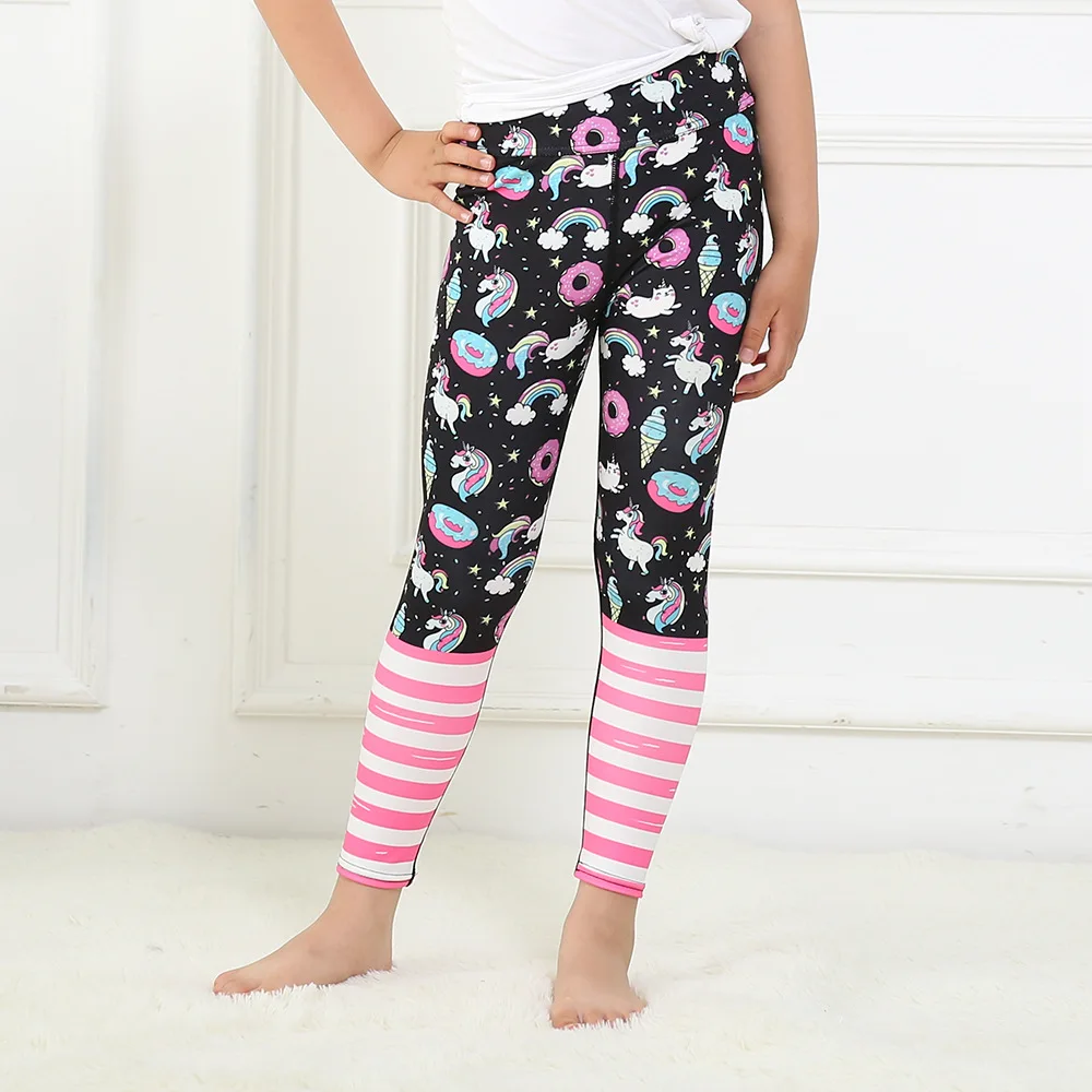 2018 осенние радужные леггинсы для девочек с принтом мороженого, Детские повседневные леггинсы для фитнеса с высокой талией, детские штаны для девочек