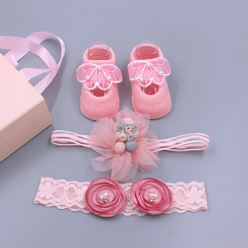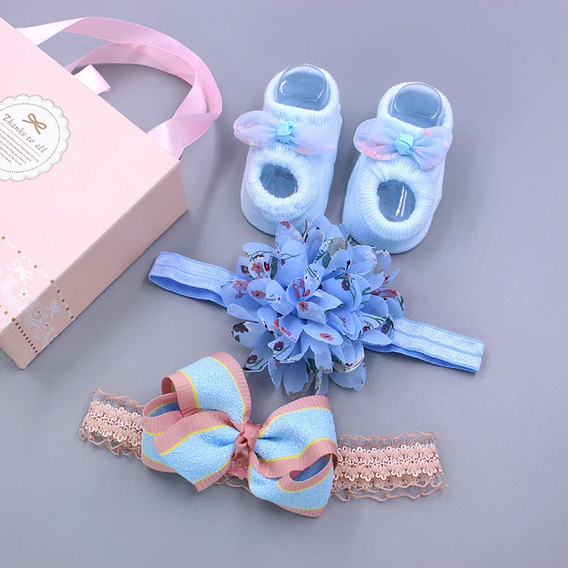 Упаковка: 1 пара носков для малышей + 2 повязки на голову