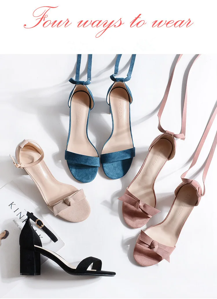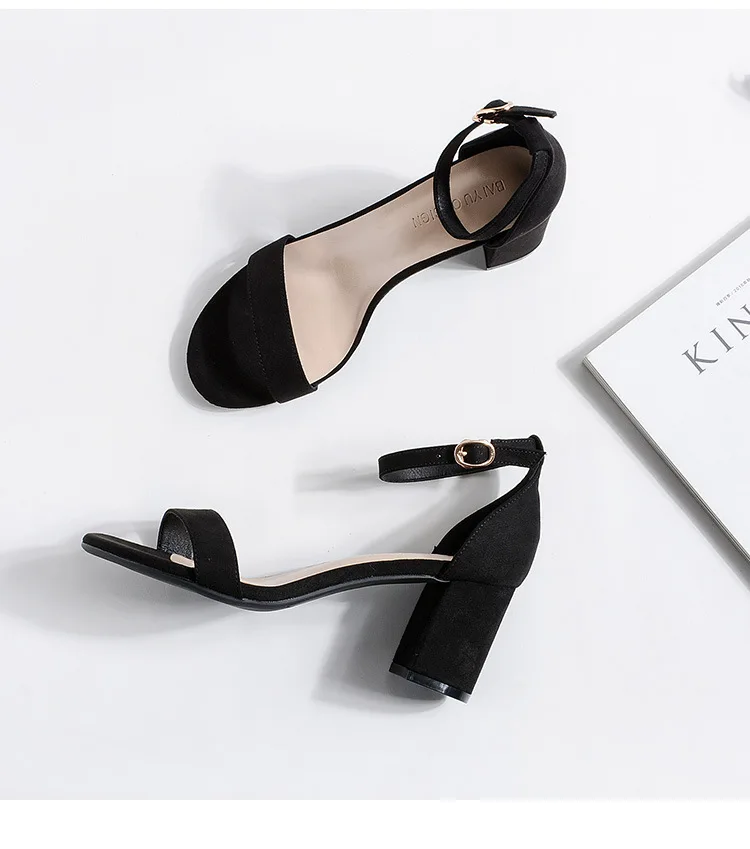 Женские босоножки на платформе YMECHIC черные высоком квадратном каблуке с ремешком