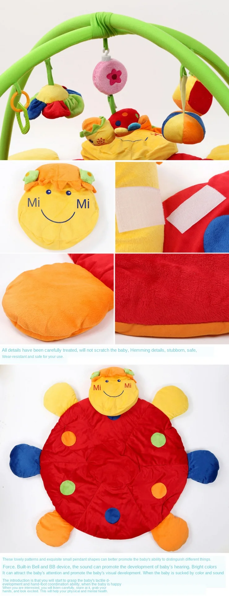 Основные характеристики: мягкие и удобные ткани, яркие цвета, Висячие детали на кронштейне имеют звенящие колокольчики, это необходимо для тренировки тактильного слуха и зрения ребенка.