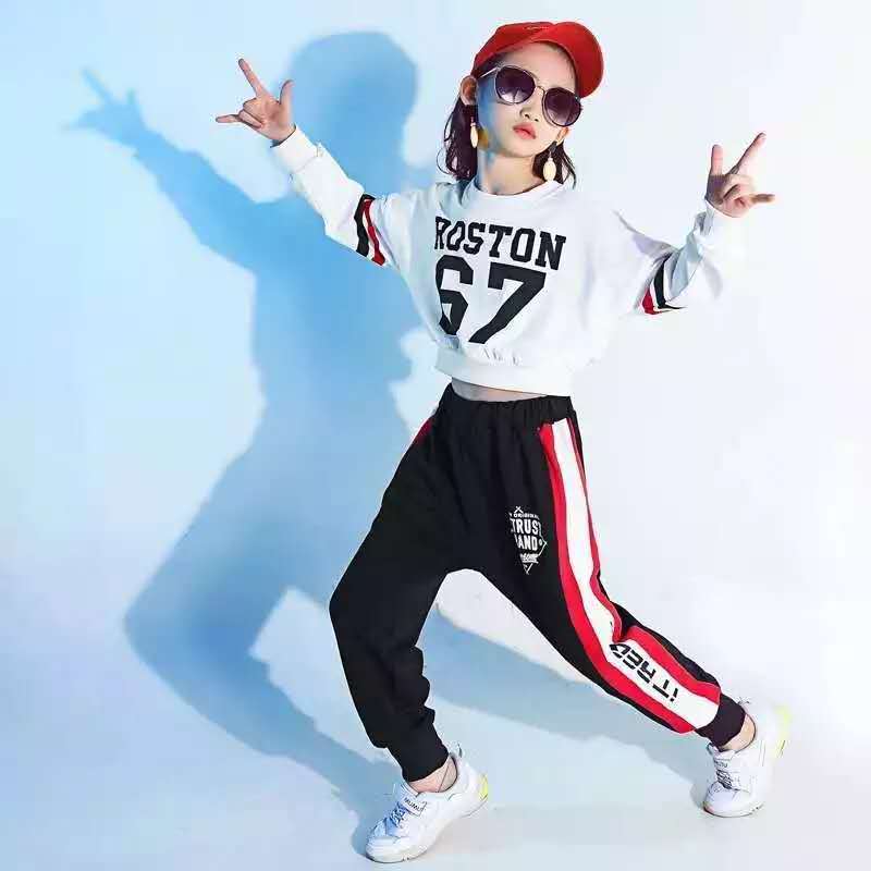 Новые танцевальные костюмы для девочек, детский уличный танцевальный комплект с длинными рукавами, детская одежда для выступлений, танцевальные костюмы в стиле хип-хоп
