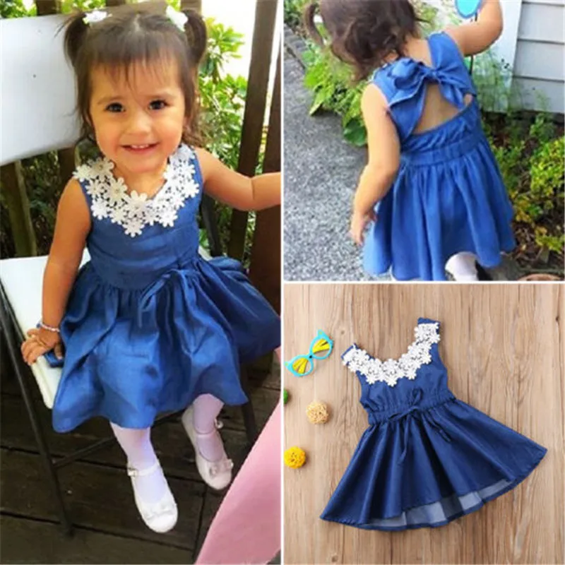 Newest Fashion Cute Baby Kids Girls Lace Demin Dress !!