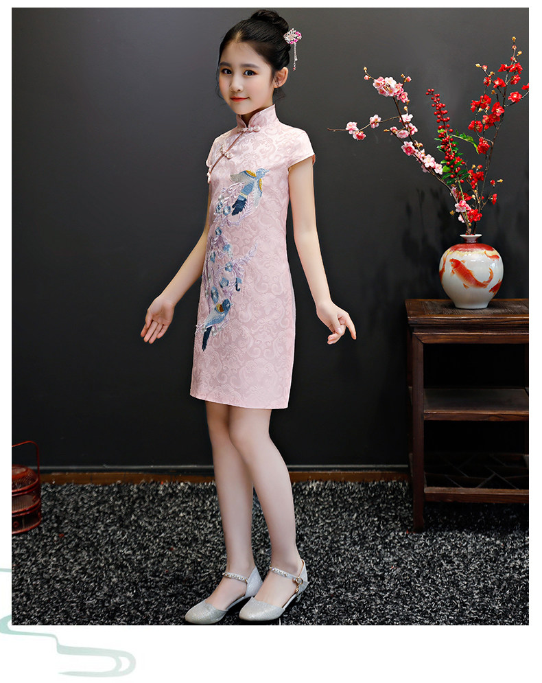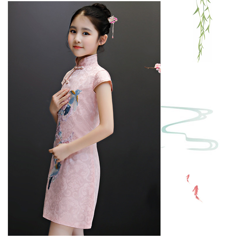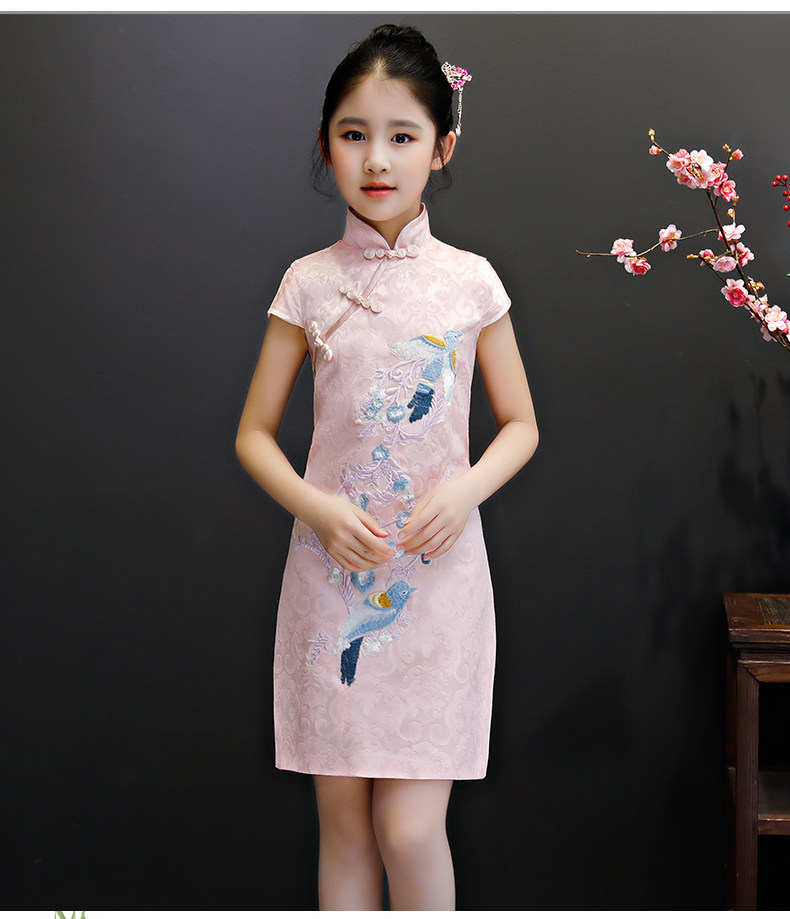 Детское традиционное свадебное платье Чонсам chipao в современном китайском стиле, платье принцессы с цветочной вышивкой, костюм ханьфу Тан, детское платье Ципао