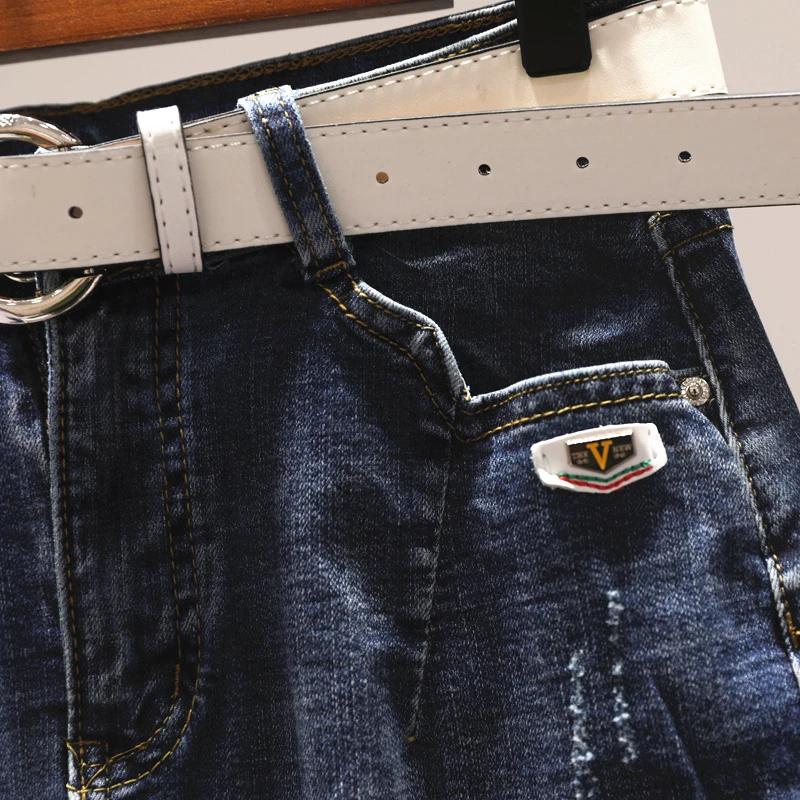 Свободные тонкие лоскутные брюки со звездами и дырками; женские джинсы с джинсовыми карманами; брюки до щиколотки светло-синего цвета