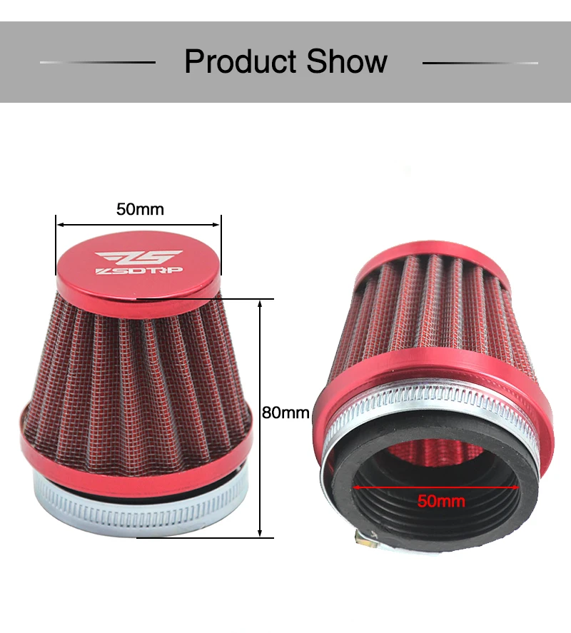 ZSDTRP Универсальный 50 мм воздушный фильтр для мотоцикла подходит для PWK KOSO KEIHIN 21 24 26 28 30 мм PE 28/30 мм PD30J карбюратор конический очиститель