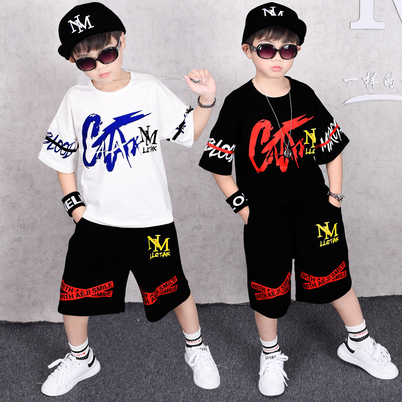 Летний комплект одежды для мальчиков, футболка и штаны, повседневный спортивный костюм с короткими рукавами и надписью для мальчиков, От 4 до 12 лет