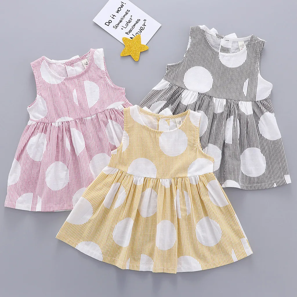 Toddler Kid Baby Girl Sleeveless Striped Printed Party Princess Dress Clothes
