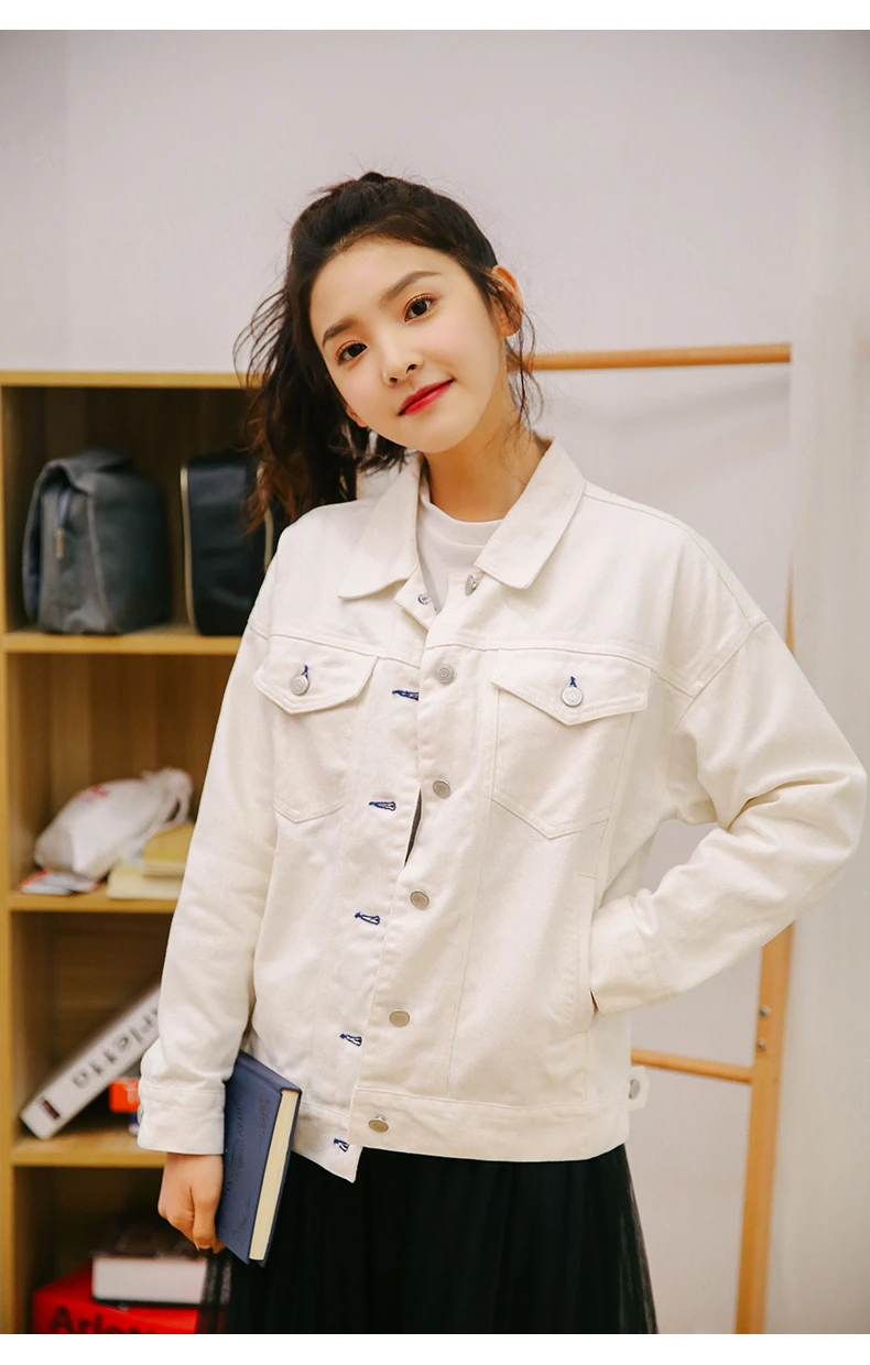 Женская джинсовая куртка в Корейском стиле, Повседневная Свободная джинсовая куртка белого цвета на весну и осень, модель RQ548, 2019