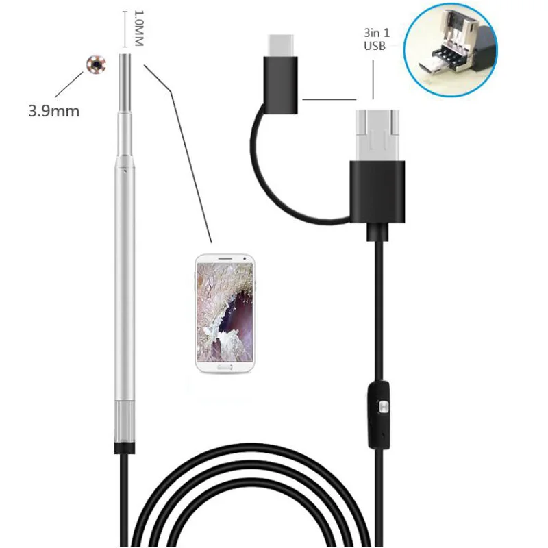 Дизайн интерфейса «Три в одном» для широкого спектра приложений для ежедневного контроля К ушному каналу может быть доступны через один и тот 3,9 мм зонд в ушному каналу, а также весь процесс может быть отмечены в режиме реального времени. Ультрамаленькие линзы, пиксели высокой четкости, легко вставляются в ушной канал, более четко видно Встроенный 6 высокой яркости светодиодный светильник s для регулировки яркости светильник в соответствии с индивидуальным потребностям Объектив IP67 из водонепроницаемого материала, легкоочищающийся, чистые и гигиенические, Корпус гладкий и нежный, и не является вредным для ушей. Подходит для ежедневной чистки и ухода, может проверять слуховые проходы, барабанные перепонки, рот, десны, глотку, полость носа, корни волос Скальпа и другие части тела (дети также могут использовать), также можно чистить уши домашних животных Поддержка телефонов Android (поддержка функции s OTG и UVC), использование компьютера Спецификация: Диаметр зонда: 3,9 мм Пиксель: 130 Вт Тип датчика: CMOS Разрешение: 1280*720P Угол обзора: 70 ° Светодиодный свет: 6 Фокусное расстояние: 1,4-2 см Класс водонепроницаемости: IP67 Длина шнура: 1,5 м