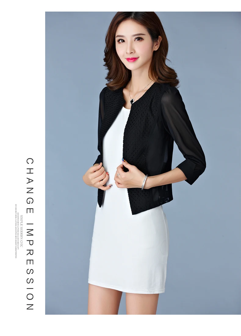 Jaqueta Feminina, лето 2019, деловой женский сетчатый кардиган, короткие куртки, женская черная/белая тонкая верхняя одежда, DC714 <