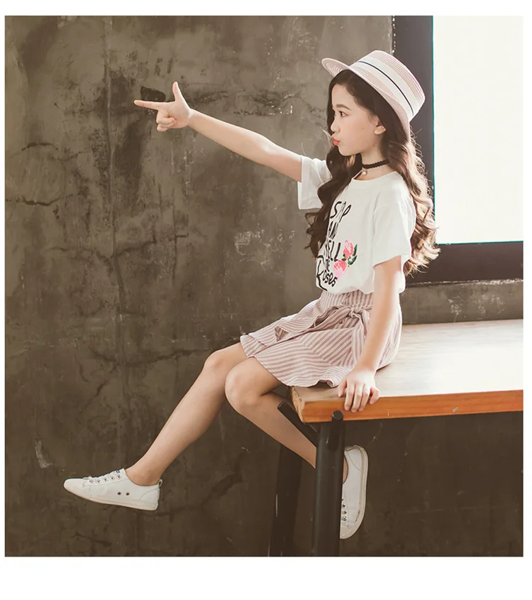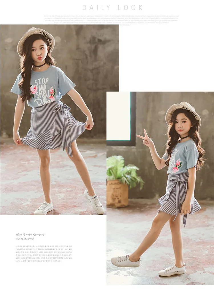 Платье для девочек, комплект одежды, новинка 2021, летне-весенние комплекты детской одежды, детская одежда, милые костюмы с розами, 2 цвета, Size110-160 ly227