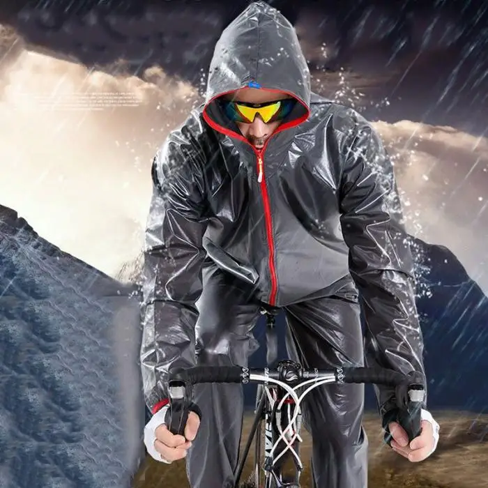 Водонепроницаемый костюм для мужчин и женщин, износостойкий комплект из куртки с капюшоном и брюк на молнии для кемпинга, велоспорта EDF88