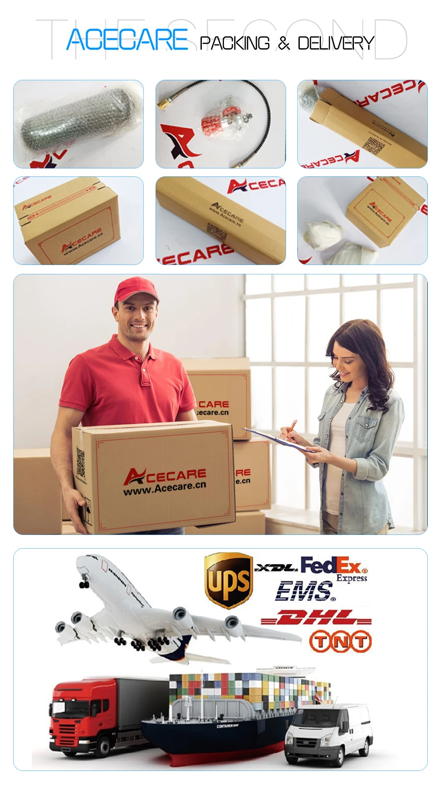 В качестве баллонов SCBA и life support используется подкладка из алюминиевого сплава с тонкой стенкой и полностью завернутым композитным материалом снаружи из углеродного волокна и стекловолокна, подходит для пейнтбола Refil, SCBA, кислородного респиратора, огнетушителя, медицинской помощи и чрезвычайных ситуаций, а также для использования в автомобильной, космической промышленности и т. Д.