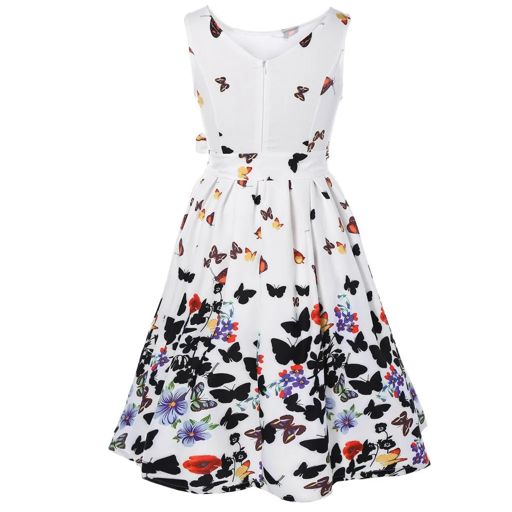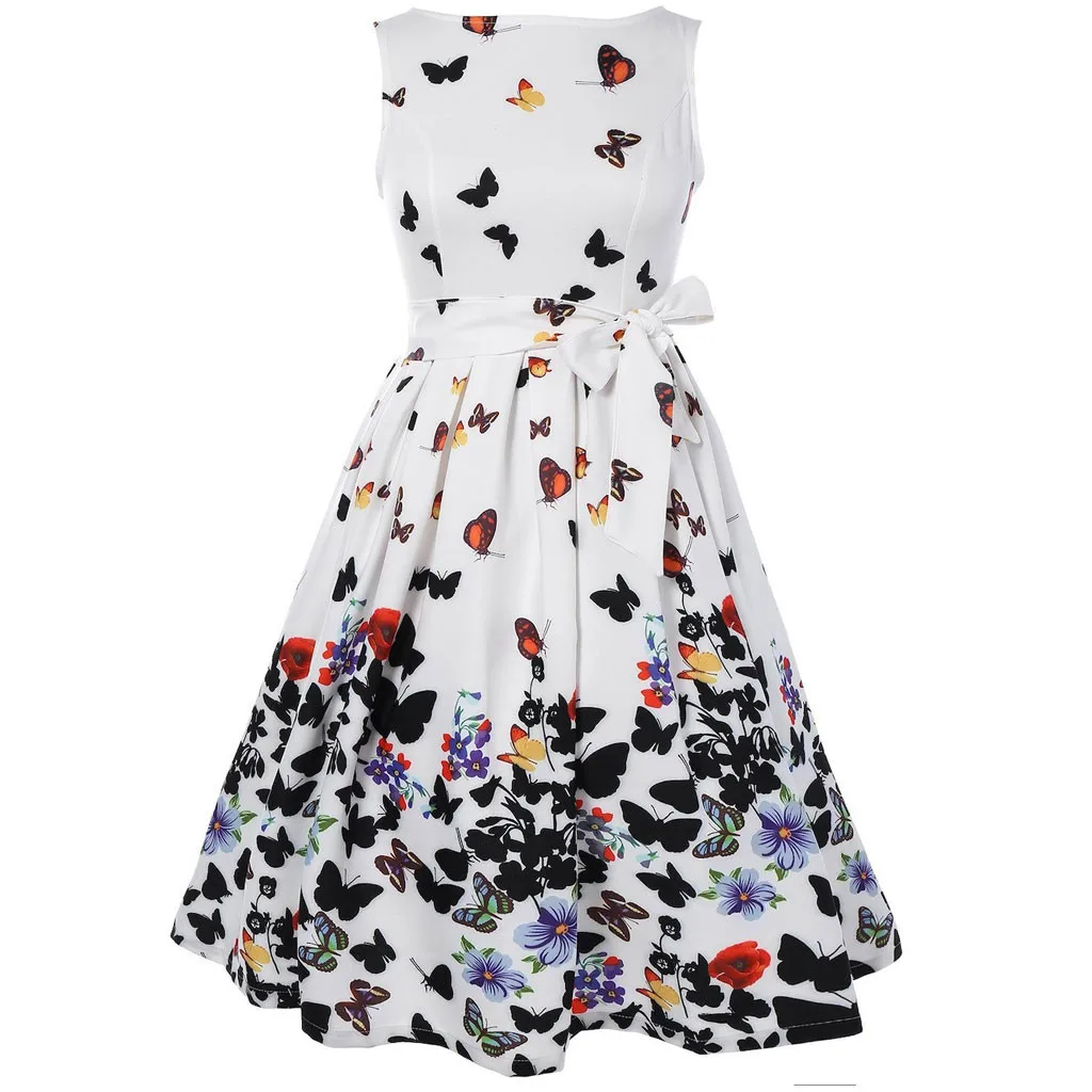 Женское повседневное элегантное платье трапециевидной формы с цветочным винтажным принтом для вечеринки