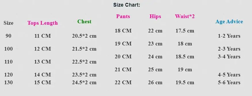 Модный дизайн, 100% новый бренд, высокое качество! Стиль: Модный Материал: полиэстер Цвет: как на картинке Размер: 90/100/110/120/130 Посылка включает в себя: 1 комплект бикини Разница в 2-3% в соответствии с измерениями вручную. Прежде чем купить эту товарную позицию, просим тщательно свериться с таблицей размеров. 1 дюйм = 2,54 см Обратите внимание что небольшая разница в цвете считается приемлемой. Это может быть связано с положением источника света и с настройками экрана. Таблица размеров: