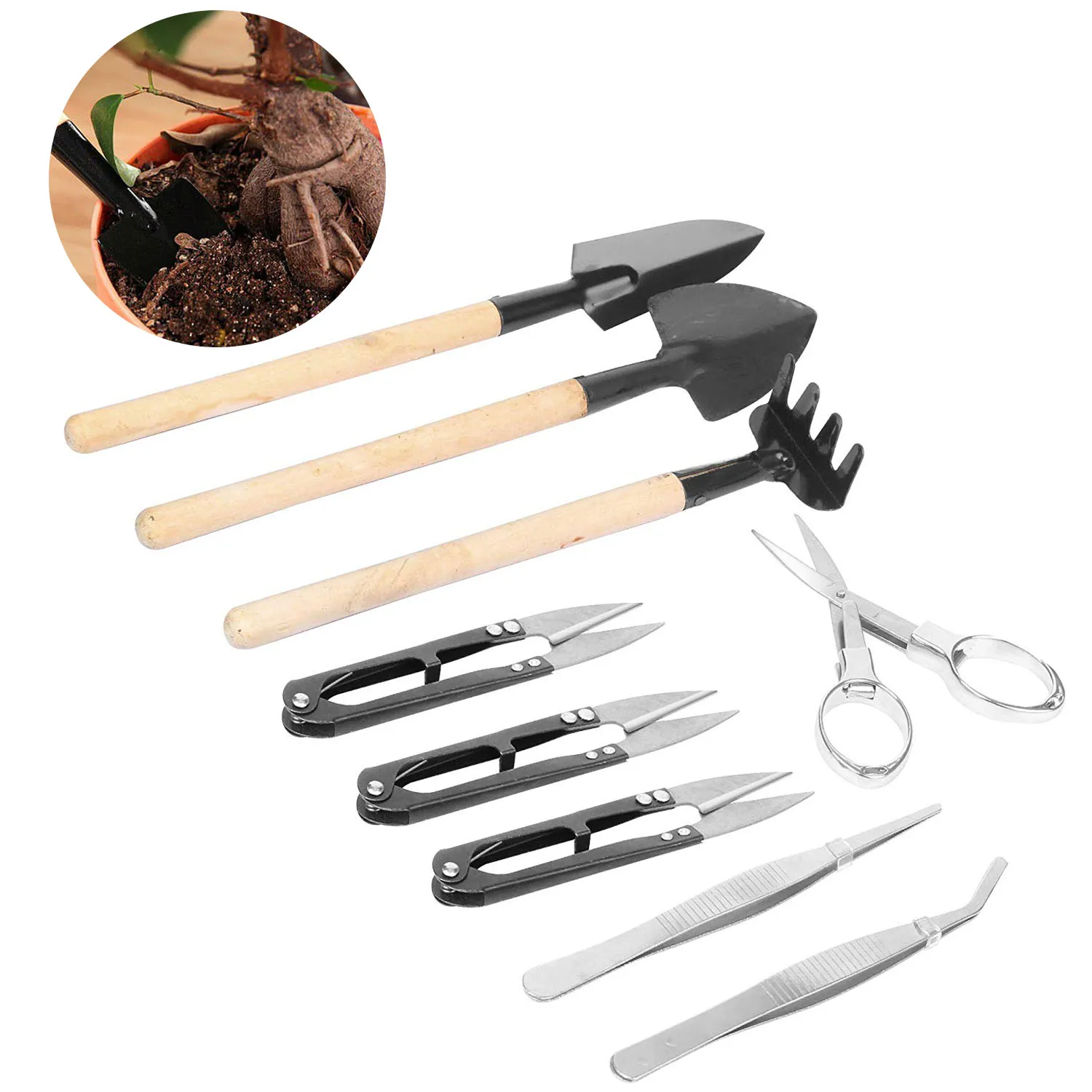 Behogar 9 шт. сад набор ручных инструментов набор с Лопата, грабли Пинцет Ножницы для бонсай цветочный горшок суккуленты комнатные растения