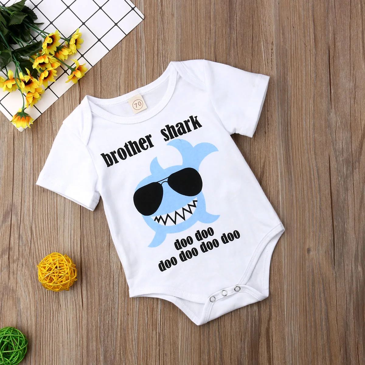 Одинаковая футболка с рисунком акулы для брата и сестры; комбинезон; одежда! Высокое качество и абсолютно новый 100% Основной цвет: как на картинке Новинка в моде Материал: 100%ХлопокОбратите внимание: если ваш ребенок пухленький, мы рекомендуем выбрать больший размер, спасибо.Пожалуйста, перед покупкой ознакомьтесь с фактическим ростом вашего ребенка и таблицей размеров. Спасибо. В комплект входит:1 комбинезон/футболка Маленький брат