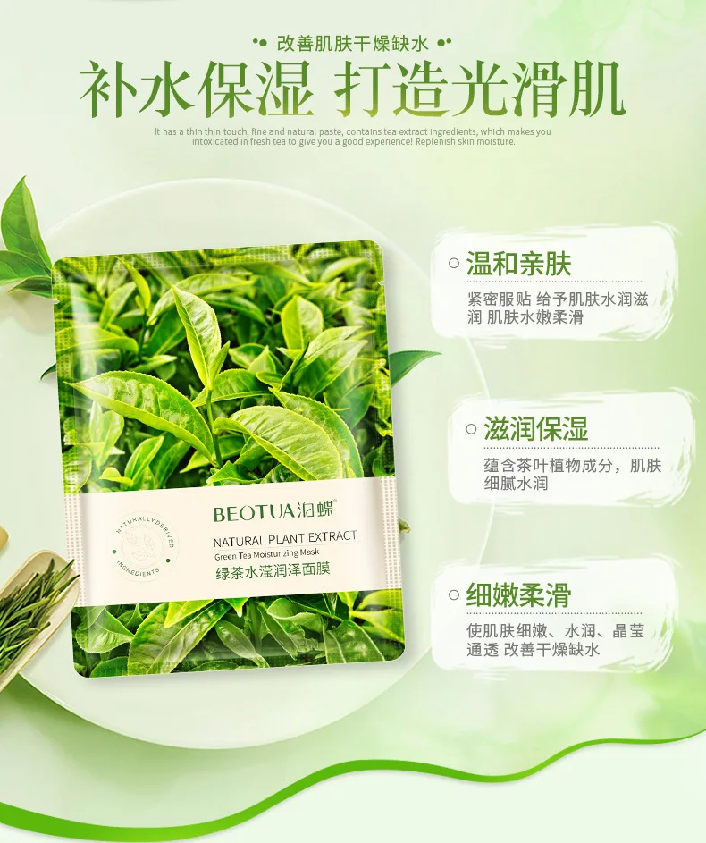 Травяной увлажняющий антивозрастной Зеленый чай Жасмин Ромашка Маска для лица лист