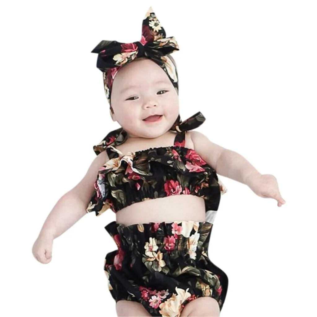 Комплект одежды для маленьких девочек: полосатая рубашка без рукавов + шорты на подтяжках