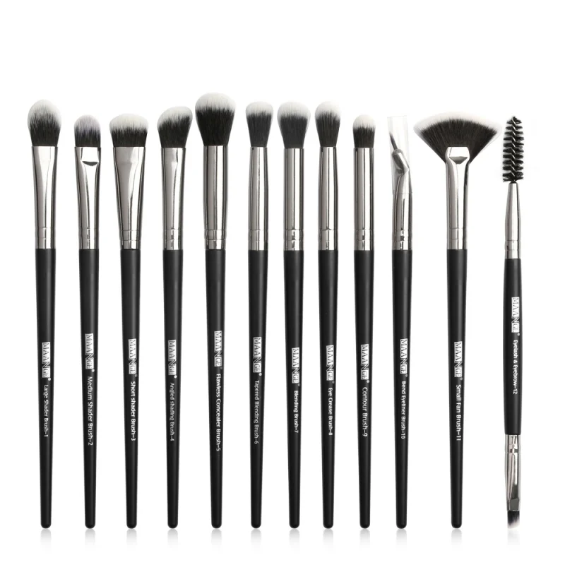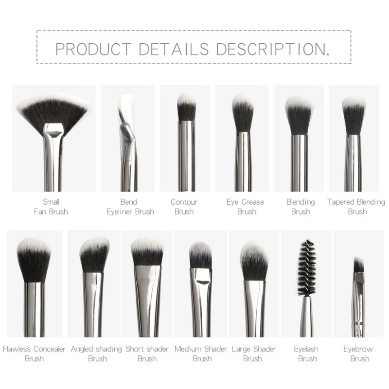 Изготовлено из высококачественных синтетических волокон. Включает в себя полный ассортимент 12 кистей для макияжа. Кисти мягкие и шелковистые на ощупь.