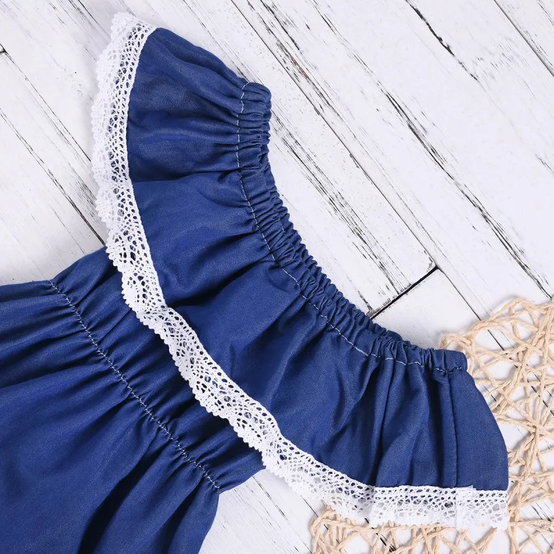 Комбинезоны для новорожденных девочек; кружевная Одежда для маленьких девочек; джинсовый летний комбинезон с открытыми плечами и бантом; одежда для малышей