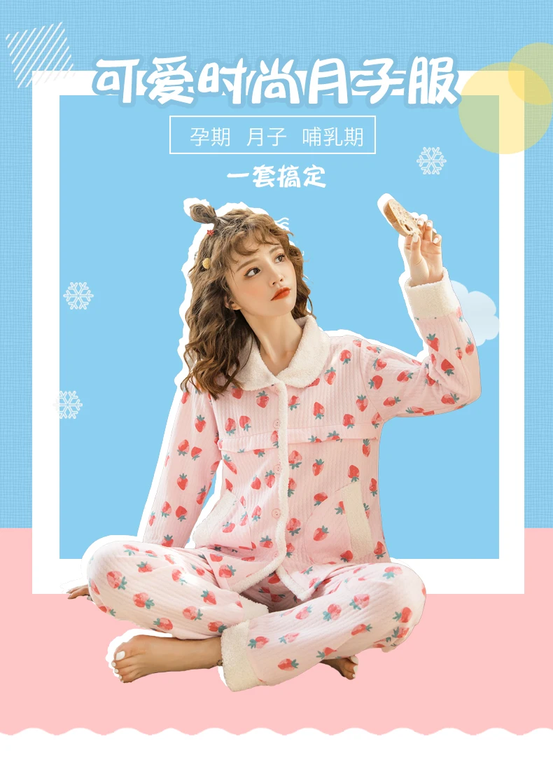 Зимняя Пижама для грудного вскармливания из 100% хлопка, тонкая удобная дышащая одежда для беременных женщин, одежда для грудного вскармливания