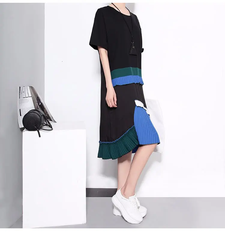 Черно белое кружевное базовое платье в стиле Харадзюку с вышивкой Офисная