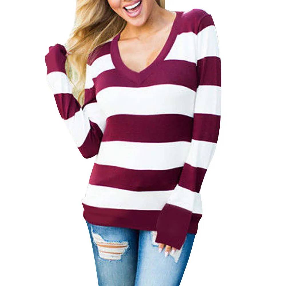 Для женщин для беременных, с длинным рукавом с рисунком в полоску Футболка дно для беременных блузка с v-образным вырезом для беременных Одежда zwangerschaps kleding