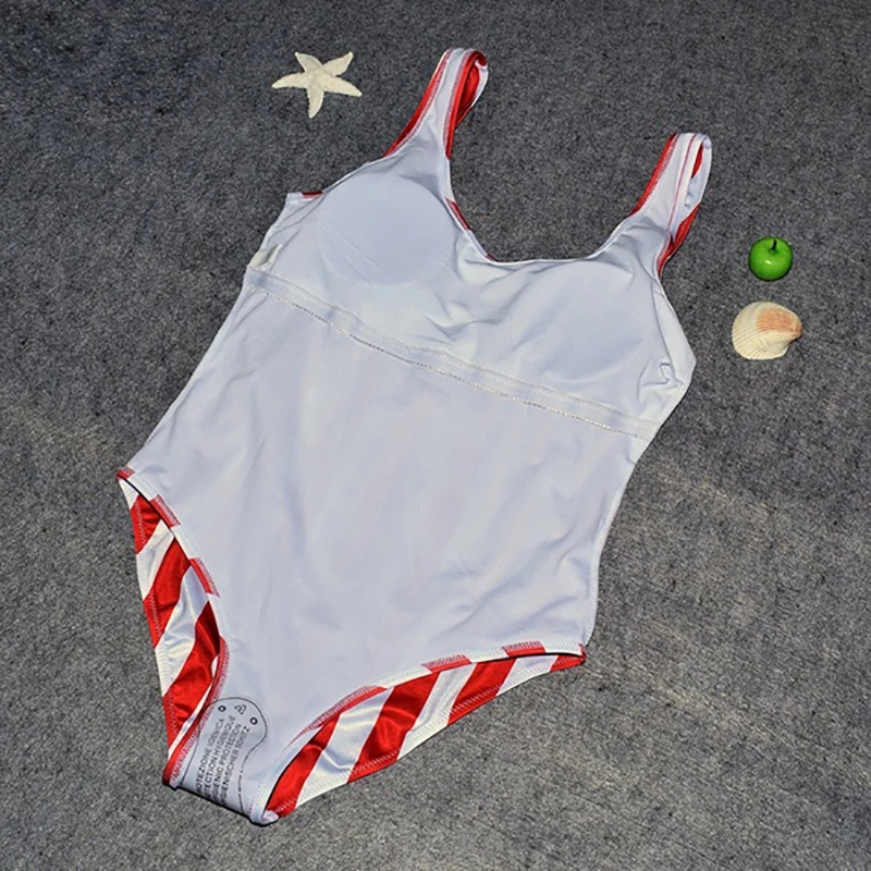 Женские Купальники 2019 цельные Красные Полосатые бикини Женский Монокини цельный