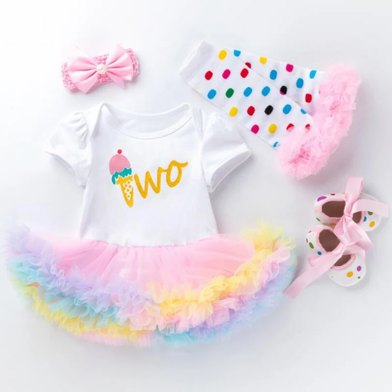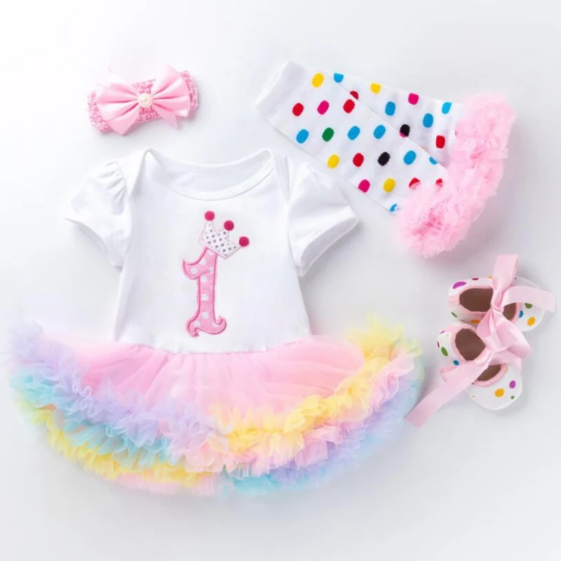 Платье для дня рождения на возраст от 2 до 1 года одежда для малышей Одежда для маленьких девочек кружевное платье-комбинезон повязка на голову, гетры, обувь для малышей комплекты с юбкой-пачкой для новорожденных