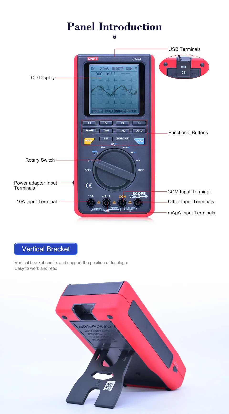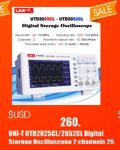 Портативные цифровые осциллографы мультиметры серии UT81 объединяют осциллограф и цифровой мультиметерин. Измерительный режим осциллографа включает вход сигнала, обработку данных, автоматическое измерение, хранение сигналов и передачу. Режим мультиметра отличается переменным/dcнапряжением и током, сопротивлением, диодом, непрерывностью, частотой, двойным соотношением и емкостью.