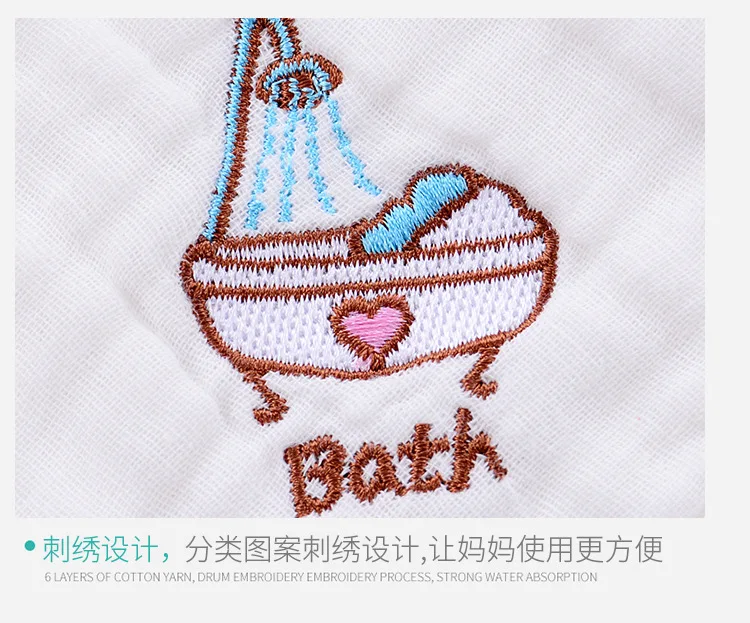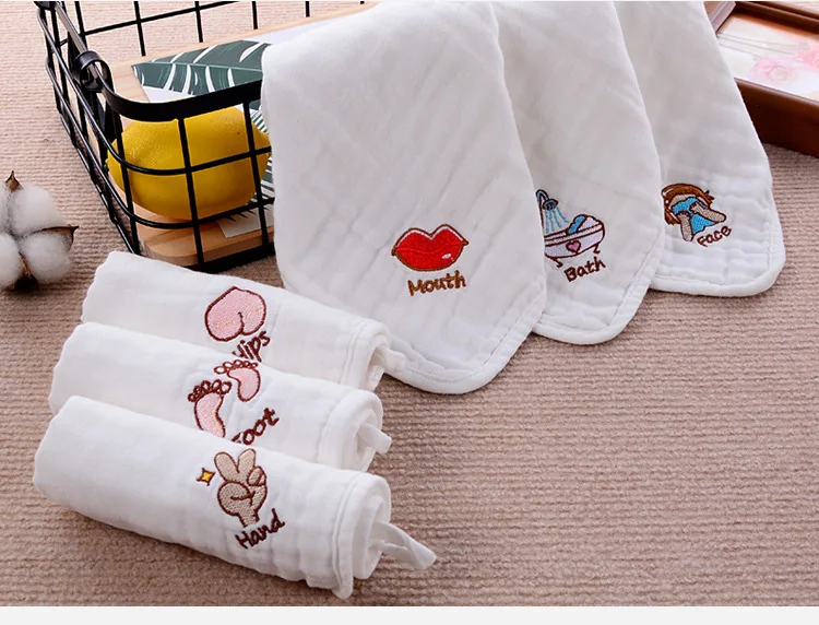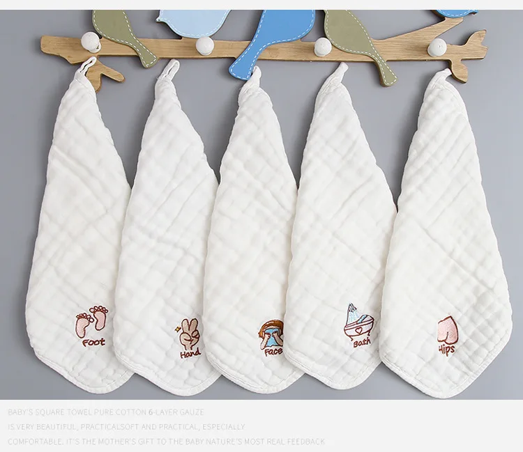 Детское газовое полотенце из пузырчатого хлопка с вышивкой, хлопковое слюнявчик, детское полотенце для мытья, маленький квадратный Детский платок 30*30 см Особенности: Возраст: размер на 0-24months Цвета (дизайн): ступни, ванны, рук, лица, бедер, рта Размер: 30 см x 30 см (после растяжения) Материал: 100% хлопок Если вы хотите выбрать цвет, пожалуйста, оставьте нам сообщение об этом.