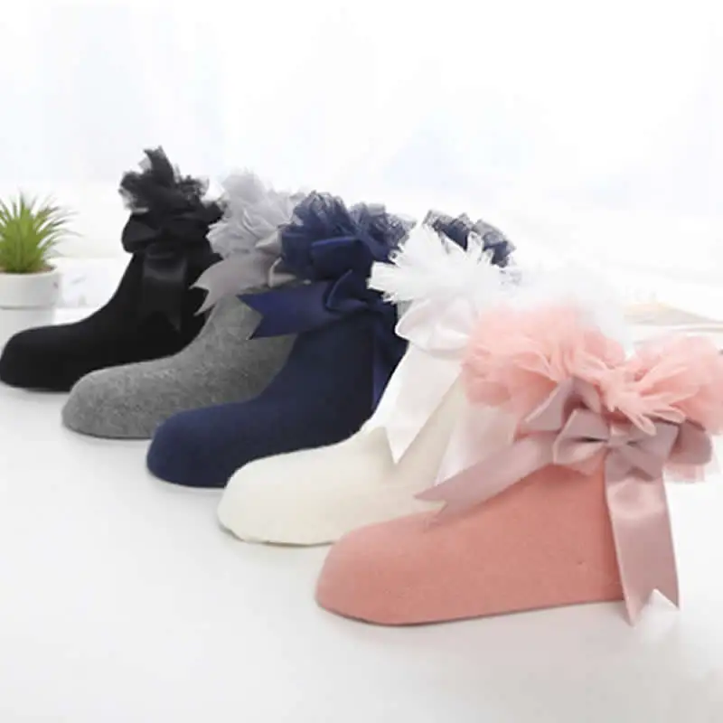* Описание товара: Детские хлопковые носки принцессы с оборками и кружевным бантом для маленьких девочек