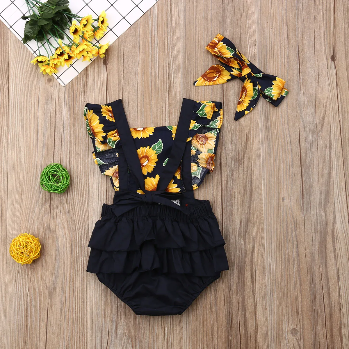 Комбинезон с подсолнухом для новорожденных девочек Высокое качество и абсолютно новый 100% Основной цвет: как на картинке Новинка в моде Материал:Смешанный хлопокОбратите внимание: если ваш ребенок пухленький, мы рекомендуем выбрать больший размер, спасибо.Просим перепроверять размеры детей, рост и полноту по размерной таблице перед покупкой/подачей заявки. Спасибо за понимание.Посылка включает в себя:1 комбинезон + 1 повязка на голову