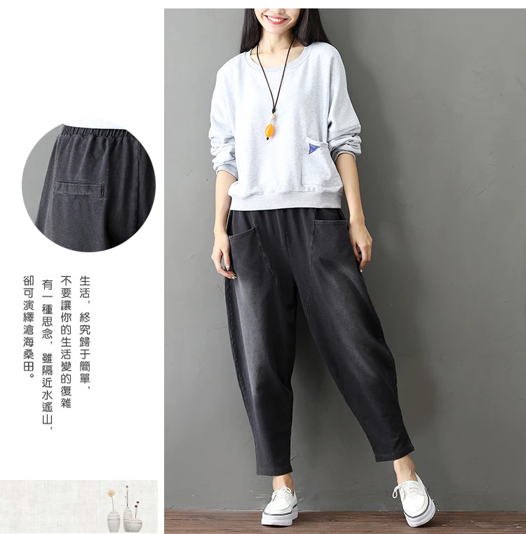 Женские джинсы из хлопка с эластичной резинкой на талии, свободные широкие брюки Boyfriend, модель E720 на осень и зиму, 2019