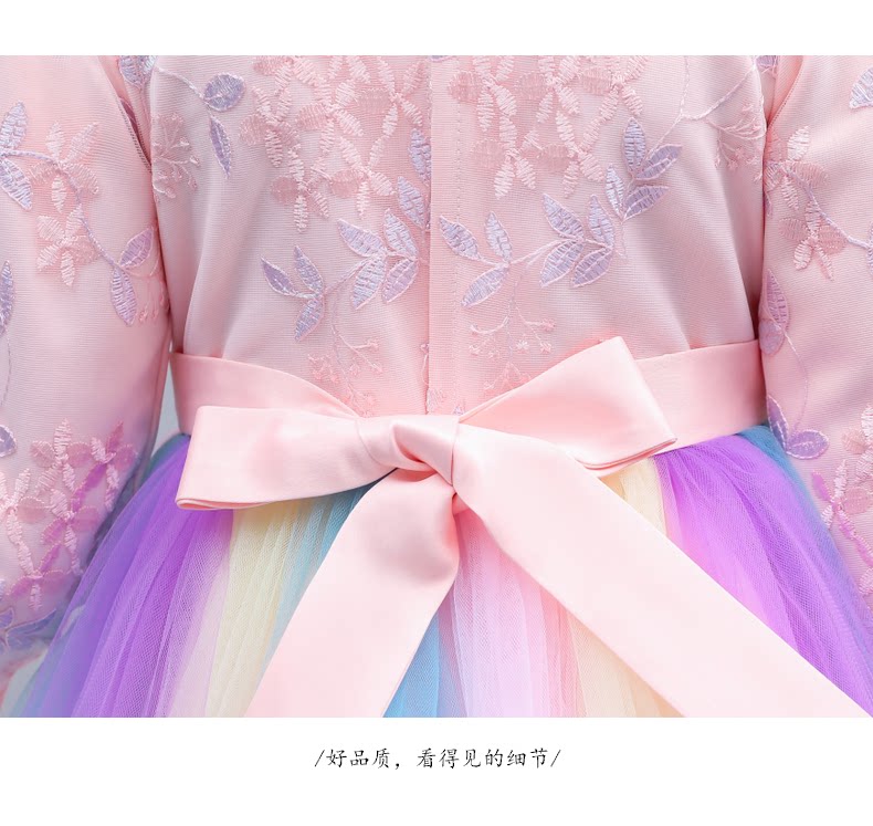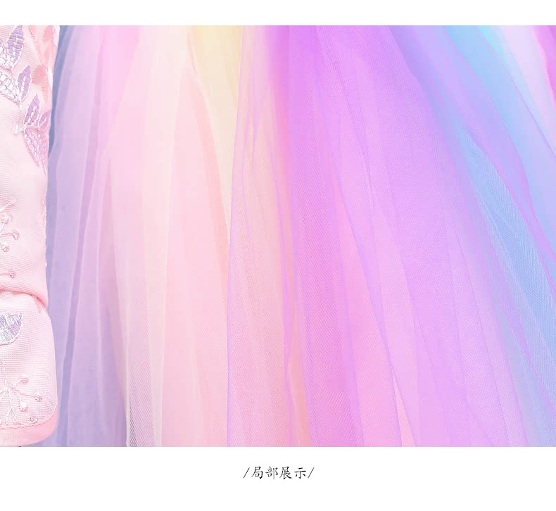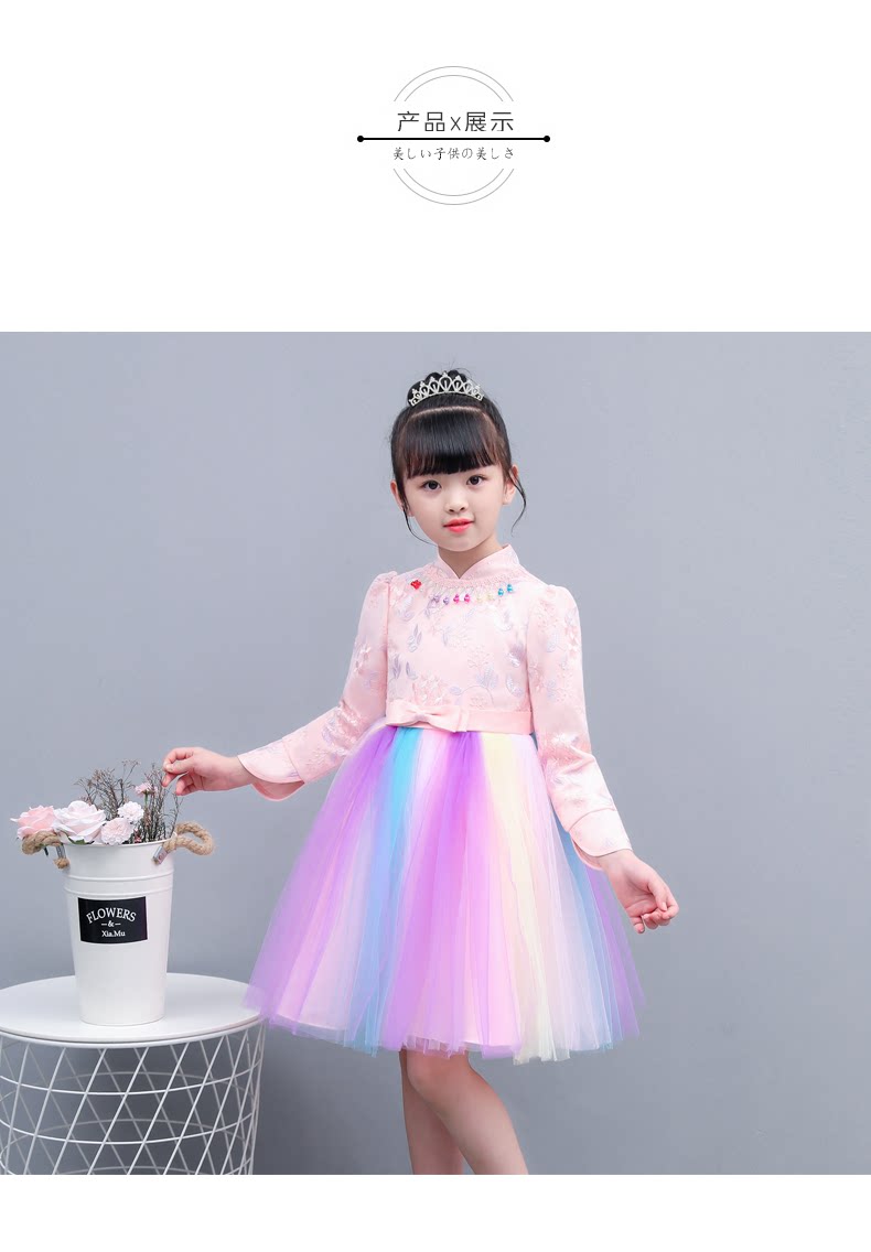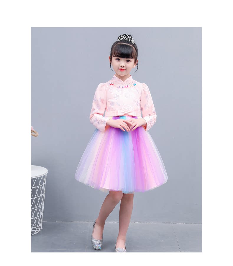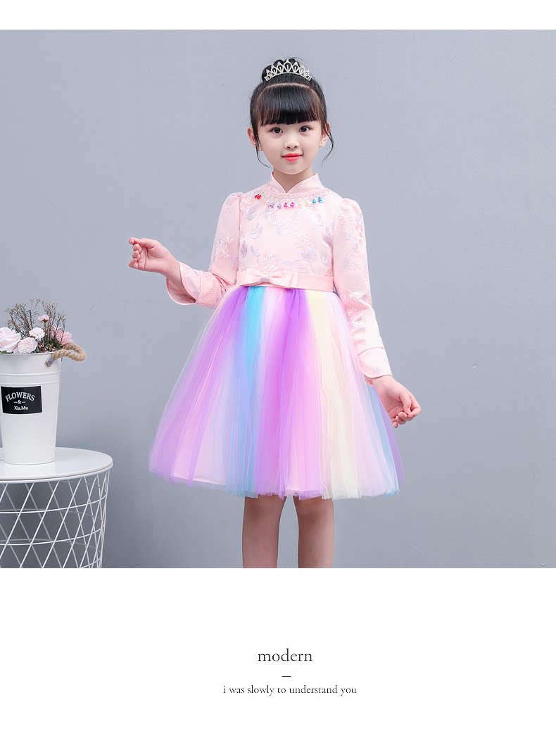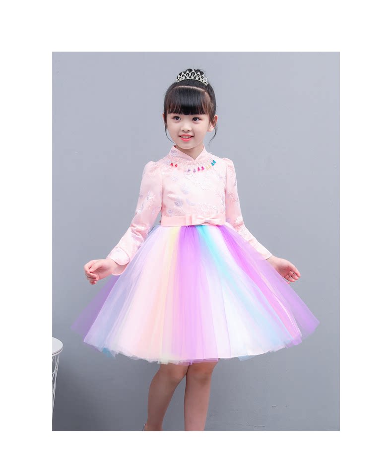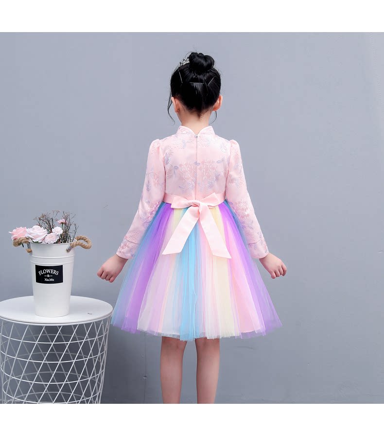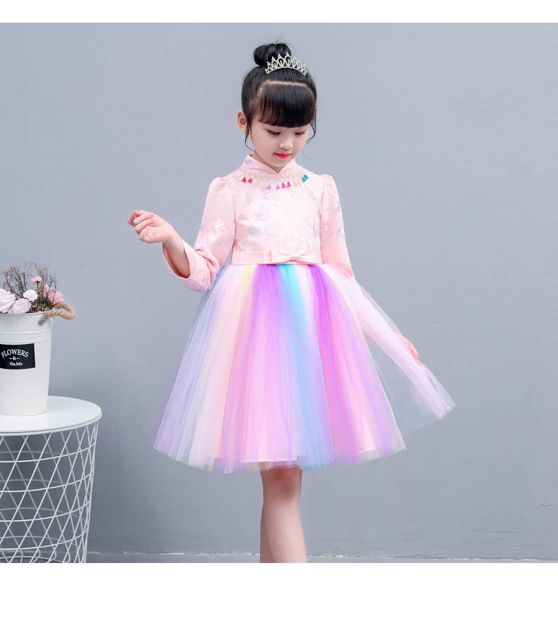 Fairy rainbow dress girls party dress kids elegant beautiful teens long sleeve fall winter modern qipao wedding little princess party