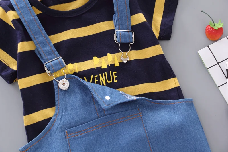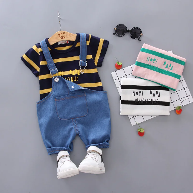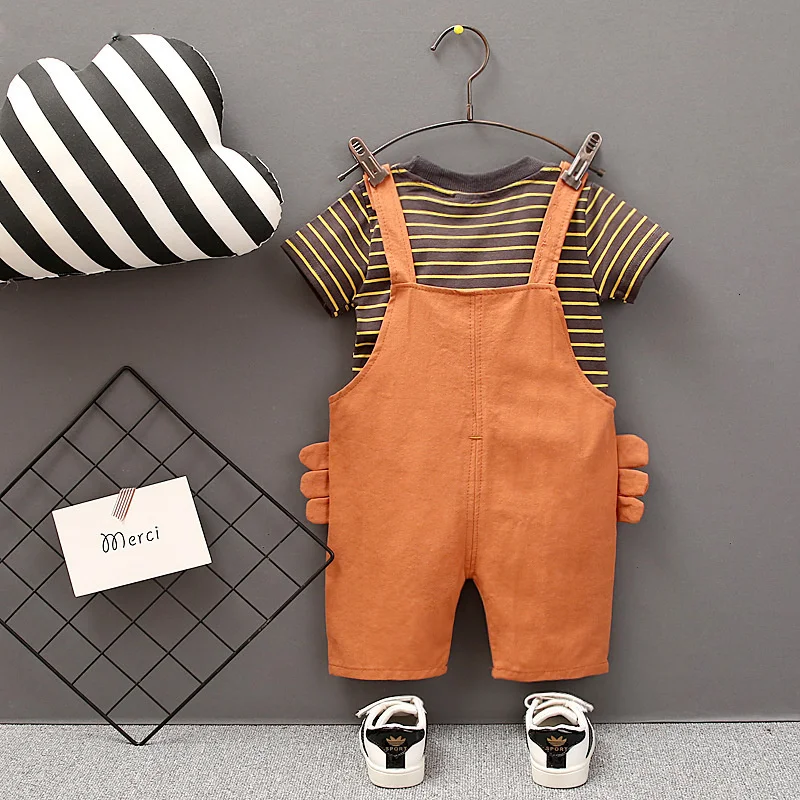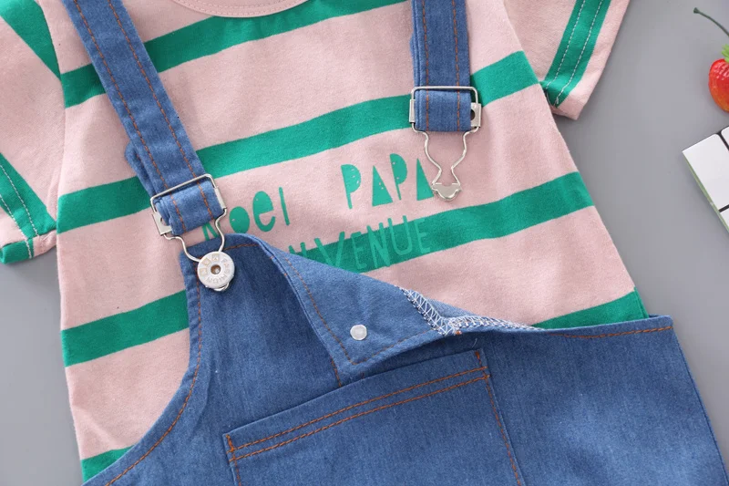 Летние комплекты одежды для маленьких мальчиков и девочек комплекты одежды для младенцев футболка в полоску шорты на лямках с героями мультфильмов детская спортивная одежда из 2 предметов для От 0 до 4 лет